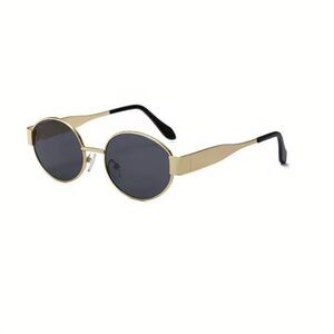 Chic and stylish sunglasses featuring a sleek gold frame and classic black lenses. Perfect for adding a touch of elegance to any outfit.