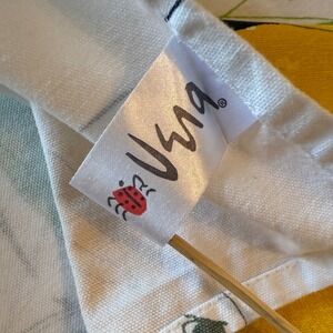 This is a beautiful retro tablecloth from Vera Neumann featuring her Flights of Fancy artwork. The colors are bright and vivid! The size is 47x51, great for a square table.