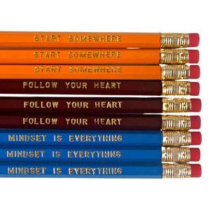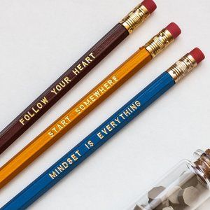 Material: Cedar Wood, Foil engraved imprint has affirmation messages on the pencils perfect for displaying in your home office to keep you inspired to jot down your dreams and thoughts while working.