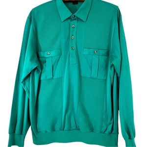 Retro Vintage Collared Pullover Blue Green Polo 2 Pocket Golf Shirt M