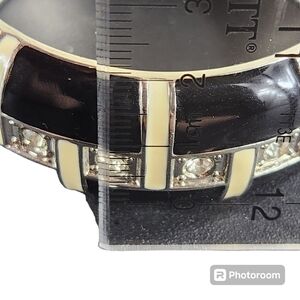 Retro Vintage Hinged Chunky Bangle Bracelet Black White Retro 80s 90s Y2k