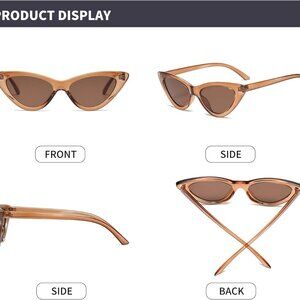 ARROW SLIM FASHION DESIGN Retro 1990's cat eye sunglasses featuring an exaggerated cat eye silhouette with a slim design. Complete with neutral colored lenses and high sitting arms, these stylishly chic sunglasses are the must-have accessory to accent this season's outfits.