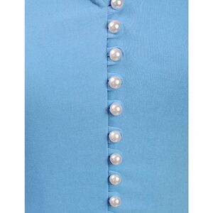 Retro Vintage Pinup 1950s Classy Elegant Cocktail Party Pearl Buttons Slim Pencil Midi Blue Dress