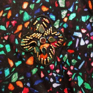 Retro Vintage Style Black Long Sleeve Gem Print Dress with Pockets Size XS