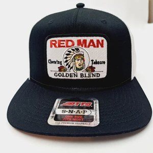 Retro Vintage Style Red Man Chew Patch Trucker Snapback Hat Quality Handcrafted