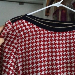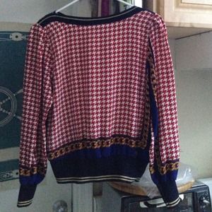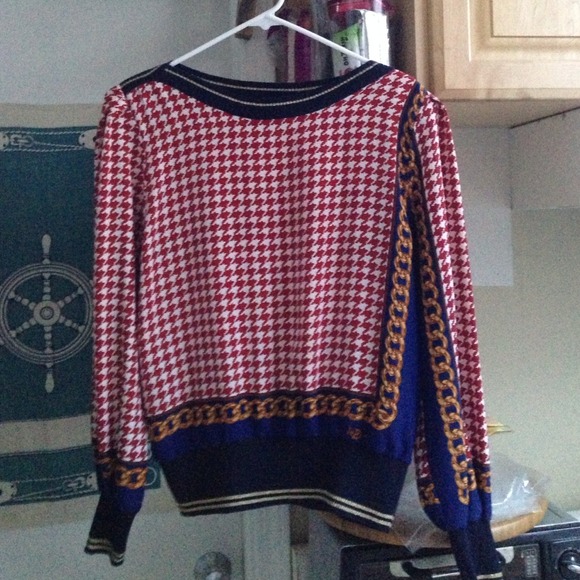 Vintage top in great condition. Faux silk(100% polyester). Gold embroider on sleeves, waist, neck. Shoulder pads. No wear or tear or stain. Says size s but fits chubby 6.