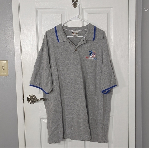 Retro Walt Disney World Embroidered Logo Grey Knit Polo Top Size Men's XL