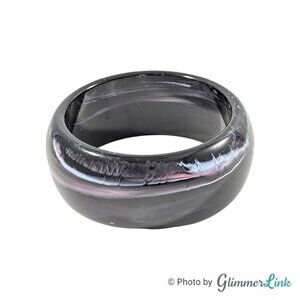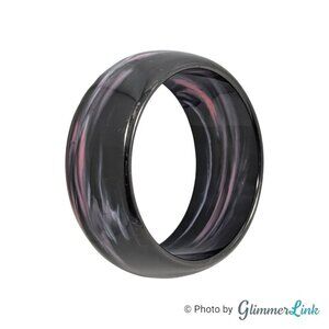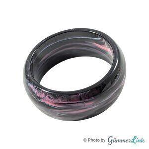 Retro Wide Dome Black Pink Swirl Plastic Resin Bangle Bracelet
