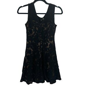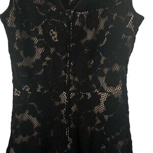 Retro Women's Vintage Lace Overlay Dress with Beige Slip Size Small