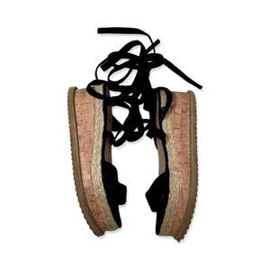 Retro Women's FRM1 Black Faux Suede Wrap-Around Strap Wedges Sandals