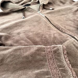 Retro Y2K Daisy Fuentes Brown Velour Zip Hoodie Lace Trim Size M