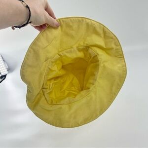 Retro Floral Boho 60’s Handmade Canvas Cotton Neon Bucket Hat. Has green and white flower print on a bright yellow canvas handmade bucket hat. Very retro y2k depop style. There is one small stain on brim that I have not stain treated. See last photo