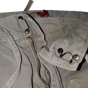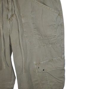 Retro Y2K Guess Jeans Cargo Pants Womens 32 Khaki Flare-Leg Baggy Drawstring