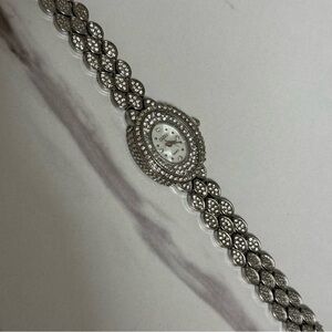 Retro Y2K Silver and White Crystal accents Vintage Quartz Watch Stainless steel + in a gift box, the size is adjustable for any hand