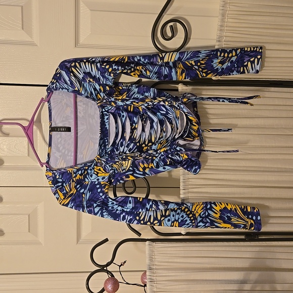 Cute size small stretchy p2p 16 inches across distressed 3d butterfly top. J Story
