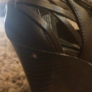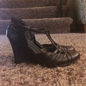 These retro wedges are great for fall! The wedge is 3 1/2 inches tall, with an added gel insole for extra comfort! Worn only a few times - there is a scuff on the back of the left heel. Open to offers!