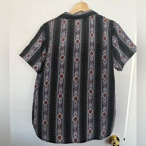 Retro button up with cool design. Size large but fits more like a medium/large. So cute and fun!