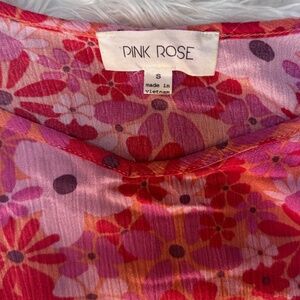 Retro flower Camisole Top | Pink Rose | Women's Small | Hot Pink | Flowy