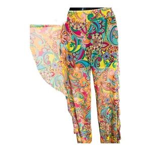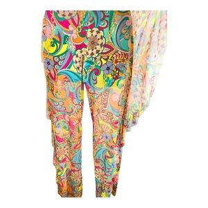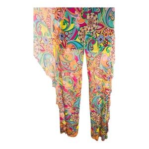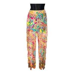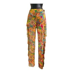 Retro 70’s groovy vibes multicolored banded waist ruffle sides sheer swim beach coverup pants size medium