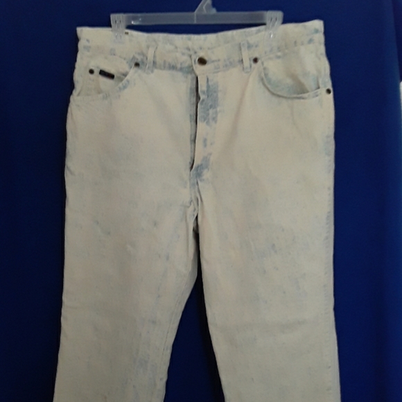 His Jean's 36X30 only see two small stains as seen in photos made in usa! Denim feel s soft and in good shape. Could bleach the strains out because of the color?