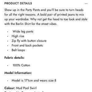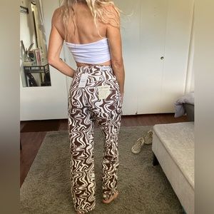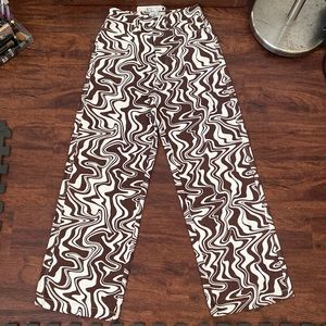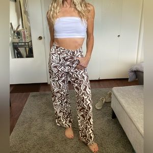 Brand new w/ tags!!! Super cute high waist, wide leg Retro vibes swirl pants!!!! These are soooo much fun and so unique!! Made by Australian company Ghanda and labeled size 8 which translates to U.S 4 (26 waist).. I’m listing under UO because they are so similar in style and vibe!! 🤎🤎🤎