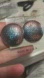 Retro metallic silver Iridescent button made in USA shiny pierced boho earrings