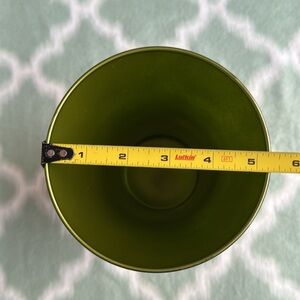Elegant retro style green glass vase perfect for adding a touch of color to your home decor. The color has a pearlized metallic hint to the glass, and can be semi translucent in different lighting conditions. Only used once after it came with flowers the first time! About 9” tall, top 5.25” across.