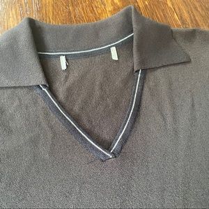 Vintage brown v-neck polo. Very versatile top. Missing size tag but fits would fit a small or medium. Stretchy material. No stains,rips, or tears.