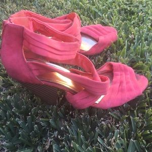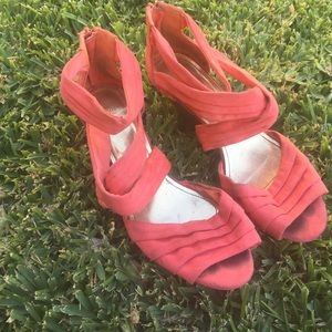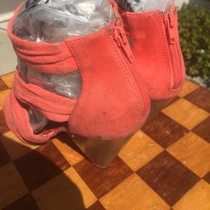 H&M vintage look round toe with pleats and criss-cross front, wood heel and back zipper. Color: Coral