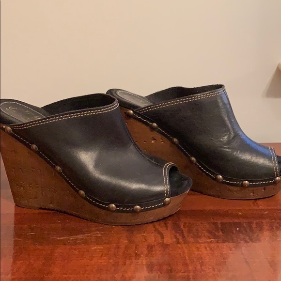 Cute sbica vintage wedges. Black leather with studs and wood heel, open to all offers 🤗