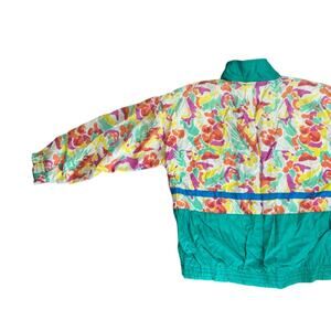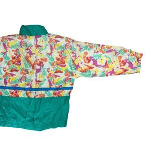 Retro windbreaker- women’s medium- vintage- Miami vibes- teal floral- zip up