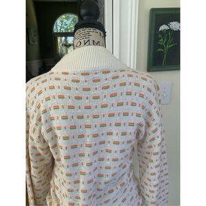 Retro 1970/80s Sweater, white with bright orange and green squares. Looks like something Jan on the Brady bunch would wear. In great condition, made in the USA. Was probably a large at the time but would be a medium these days.