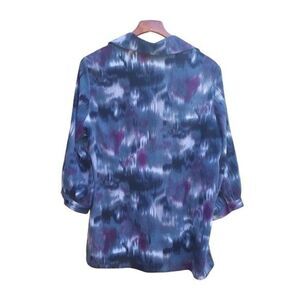 Retro 70's Wing Collar Surplice Long Sleeve Tunic Top Blurred Brushstroke Sz 1X