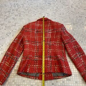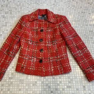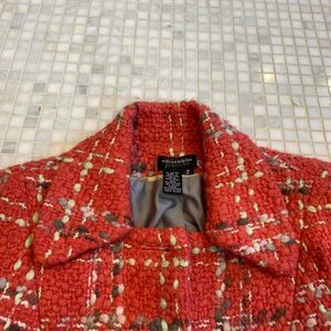 Power 80s Retro Boucle Jacket. Long sleeve with large buttons. Lined interior. Shoulder pads!