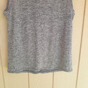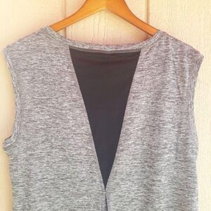 Workout oversized sleeveless tunic top in gray with back black breathing mesh and slit by RBX. Comfortable active workout wear.