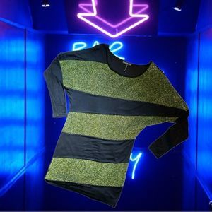 Retro 80s club dress, black bodycon mini with attention grabbing sparkle stripes