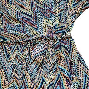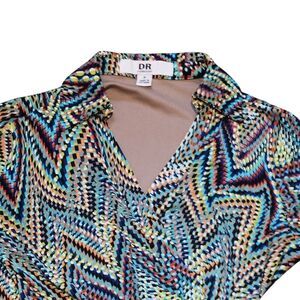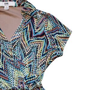 #dress #casual #women #medium #collar #retro #abstract #faux wrap #wrap #flattering #wrinkle resistant #colorful #bold #femine #work #office #lightweight #professional #church #wedding #party #date night #stretch #flowing #fall #winter