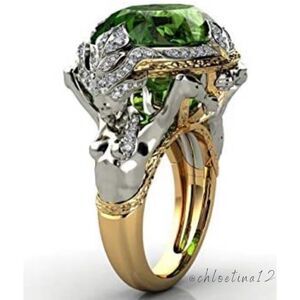 Retro Emerald Crystal Engagement Ring 925 Sterling Silver