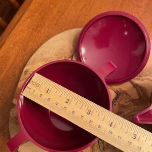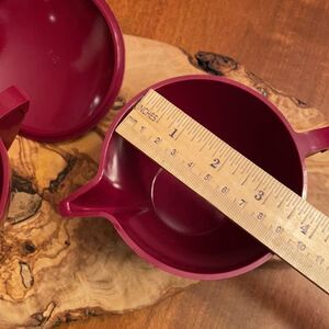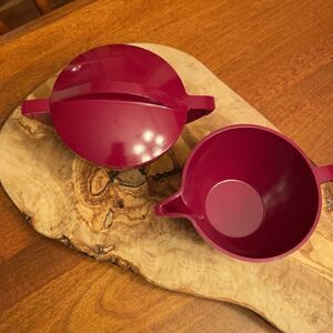 EUC. Atomic Style Mallo-Ware Melamie Creamer & Sugar with Lid. Hard to find Burgundy Color. Stamped Mallo-Ware P.R. Mallory Plastics Inc. Chicago ILL.