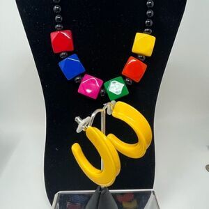 This set is in new condition, never used. Great to wear this summer. The set is just beautiful and made of light weight plastic.