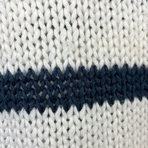 Retrod. Cream & Navy Blue striped scoop neck hi-lo sweater. XXL. Slightly oversized. Incredibly Soft. Long sleeve. There are 2 small spots center chest (see pic) and inside of right cuff. This has been laundered but not stain treated. Other than mentioned here this is in great condition and ready for your cozy autumn days. Pair w/ a puffer vest, a pair of distressed jeans and some uggs for a great fall look.