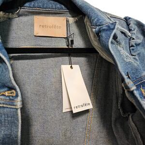SEO Keywords: Retrofête Ada jacket, puff sleeve jean jacket, padded shoulder denim jacket, vintage distressed denim coat, designer women’s jean jacket, Retrofete puff shoulder jacket, retro power shoulder style, luxury streetwear denim, authentic Retrofete jacket.