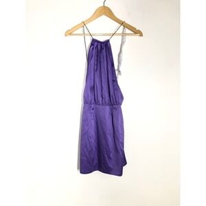 Retrofete Anahita Dress Silk Halter Neck Rhinestone Open Back Mini Violet NWT XS