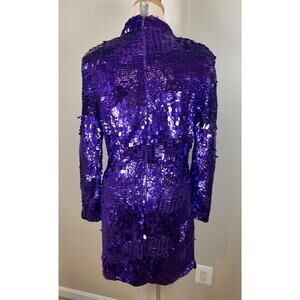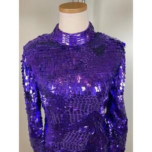 Retrofete April Sequin Embellished Long Sleeve Royal Purple Mini Dress Sz Large