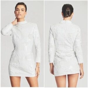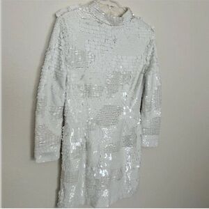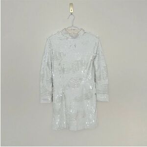 Retrofete April Sequin Long Sleeve Mini Dress White
