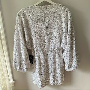 Retrofete Aubrielle Sequin Chiffon Mini Dress - White Silver