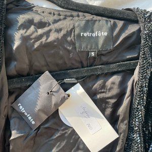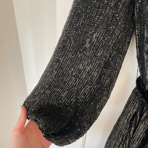 Retrofete Audrey Robe Dress Shiny Black Blue Sequins Wrap Style Midi Dress