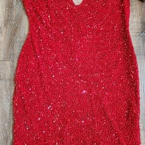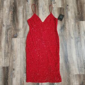 Retrofete Billie Sequin Dress in Red Size Large Sleeveless Knee Length NWT