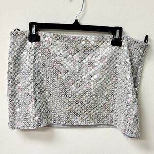 Retrofête Birdie Embellished Sequins Low Rise Mini Skirt Mink Grey Womens Size L