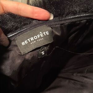 Retrofete Black Sequin Mini Dress with Pink Feather Trim